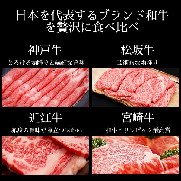 ■規格:神戸牛モモ60g、松阪牛モモ60g、近江牛モモ60g、宮崎牛モモ60g