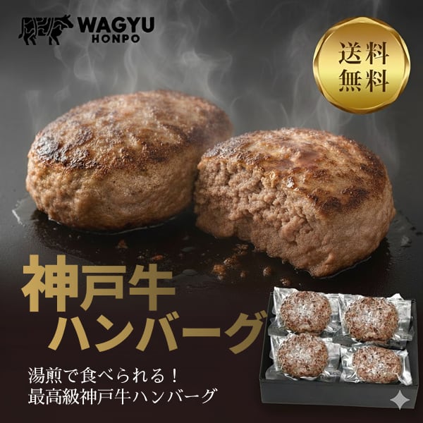 日本が世界に誇る最高級ブランド牛「神戸牛」を100%使用したハンバーグ。きめ細かな霜降りと甘みのある赤身、コクのある脂身のバランスが絶妙な神戸牛の特徴を余すことなく味わえる逸品です。